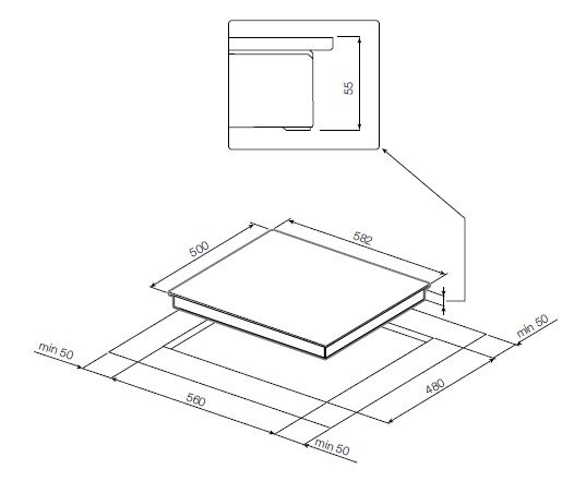 • Ш х В х Г= 582 х 55 х 500 мм.