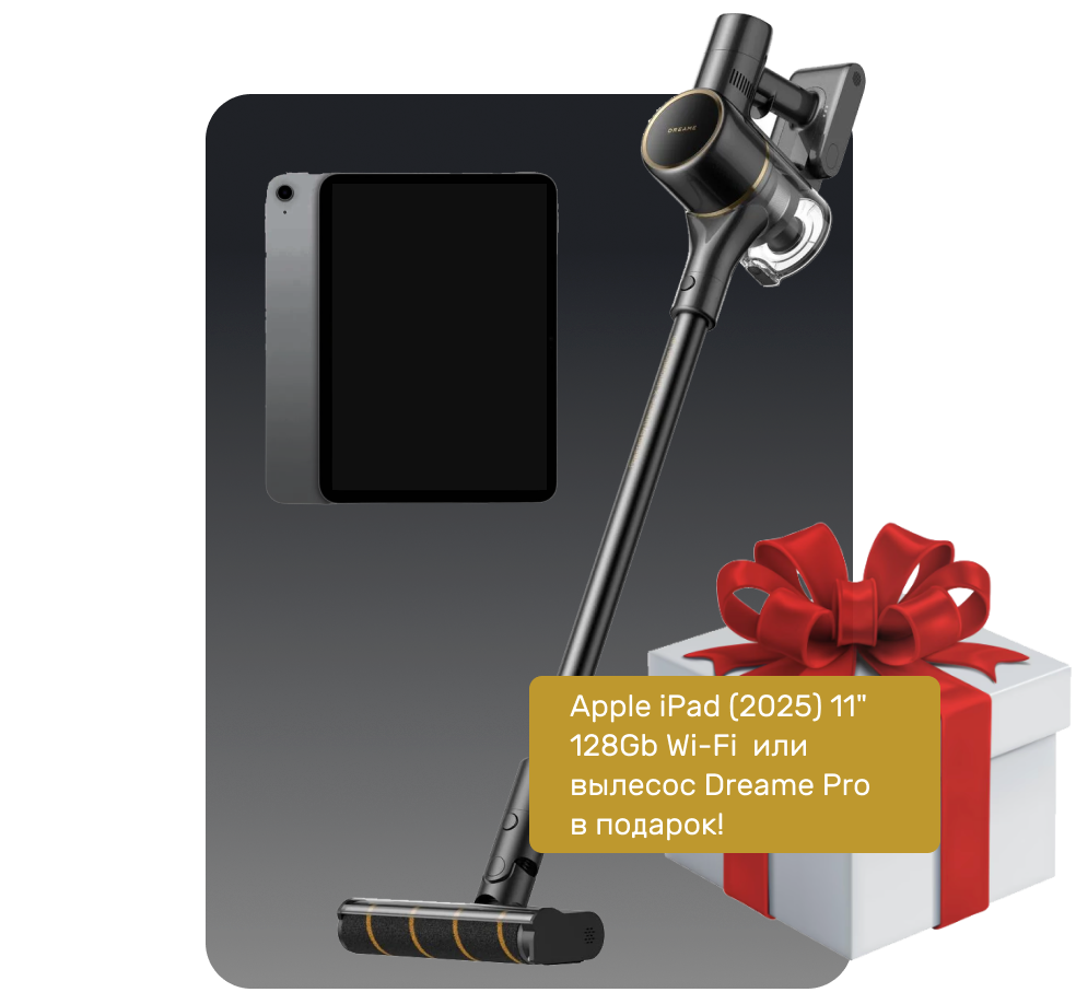 При покупке моделей ZERO, QUANTUM, BRERA, LEVEL ONE – подарок пылесос Dreame R10s Pro или планшет Apple iPad (2025) 11" 128Gb Wi-Fi